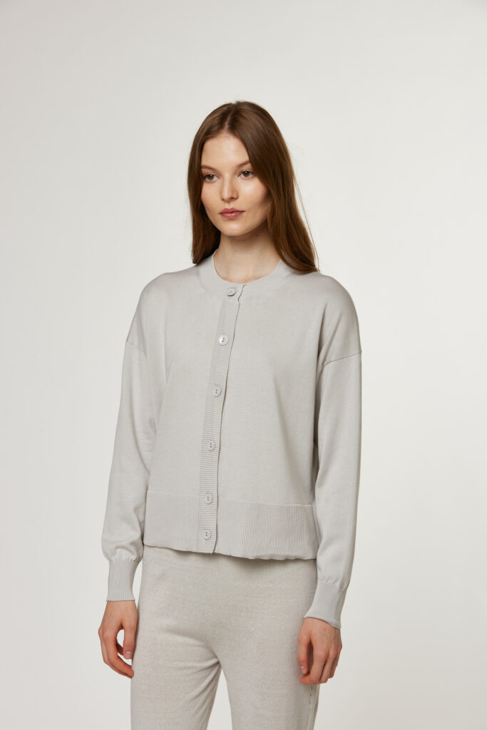 Cardigan con bottoni, capo in 100% cotone crepe, con balza a coste 1×1 su fondo e polsini, fit regolare, rasato, F16