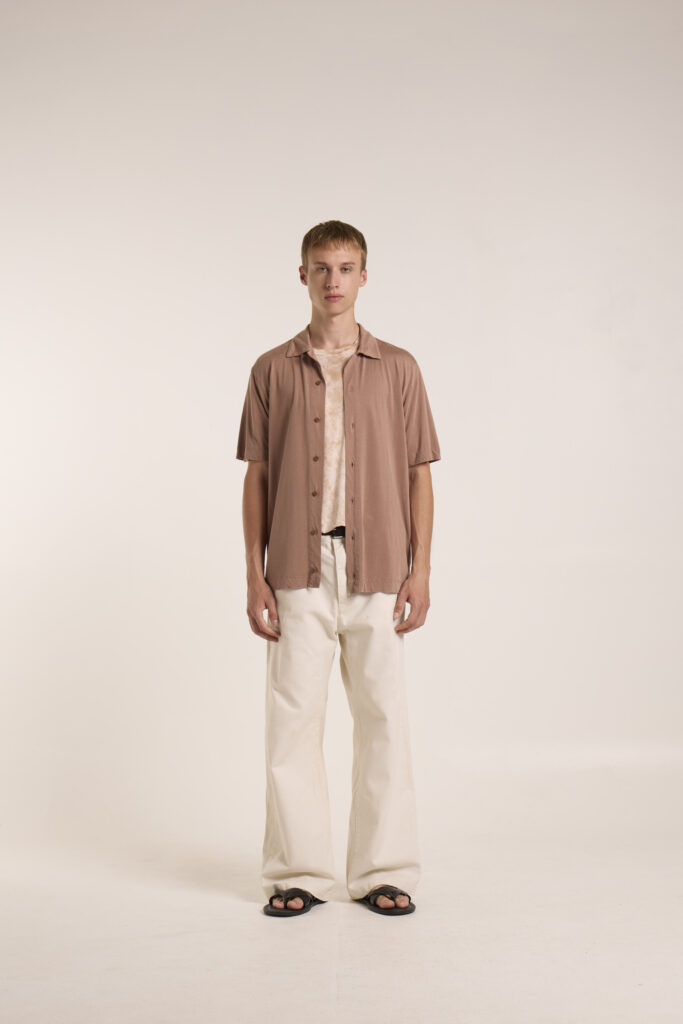 camicia collo polo, mezza manica in vanisè di cupro cotone