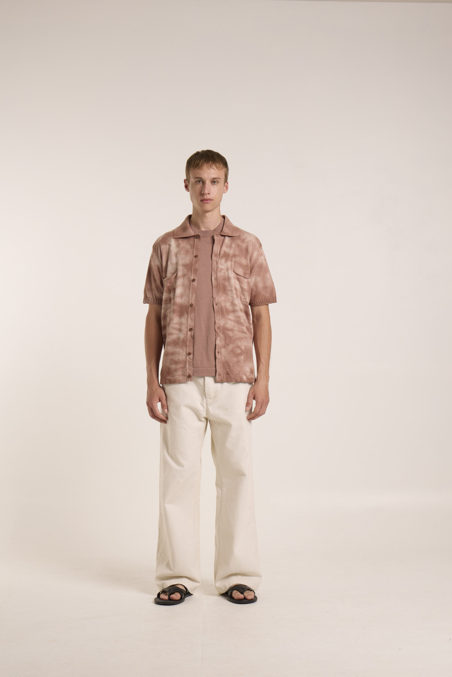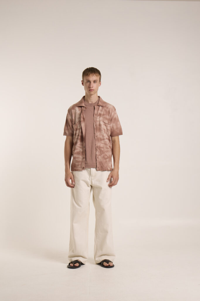 cotone pettinato tie&dye, camicia calata, con polso traforato, tasche e balza tubolare, fin 14