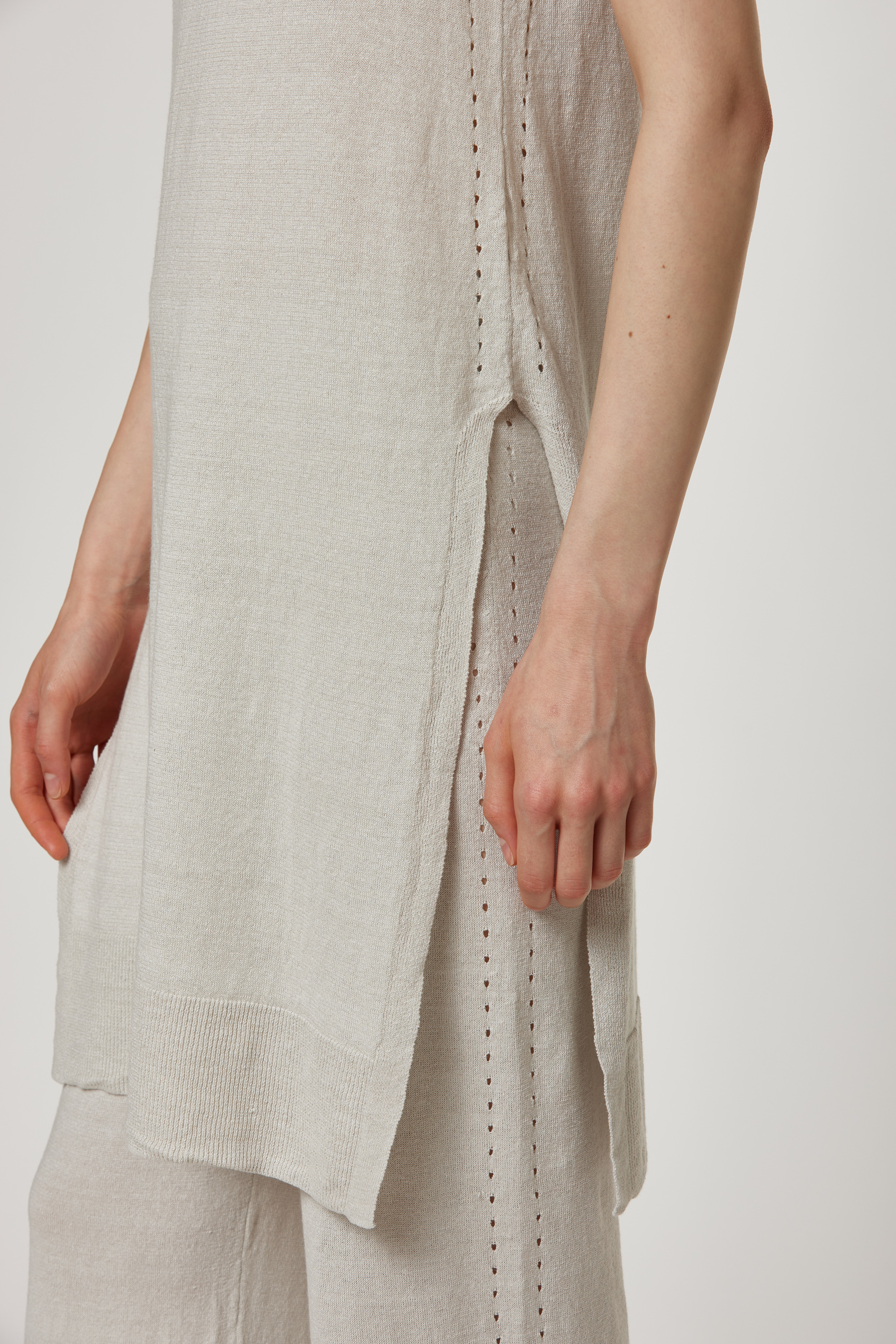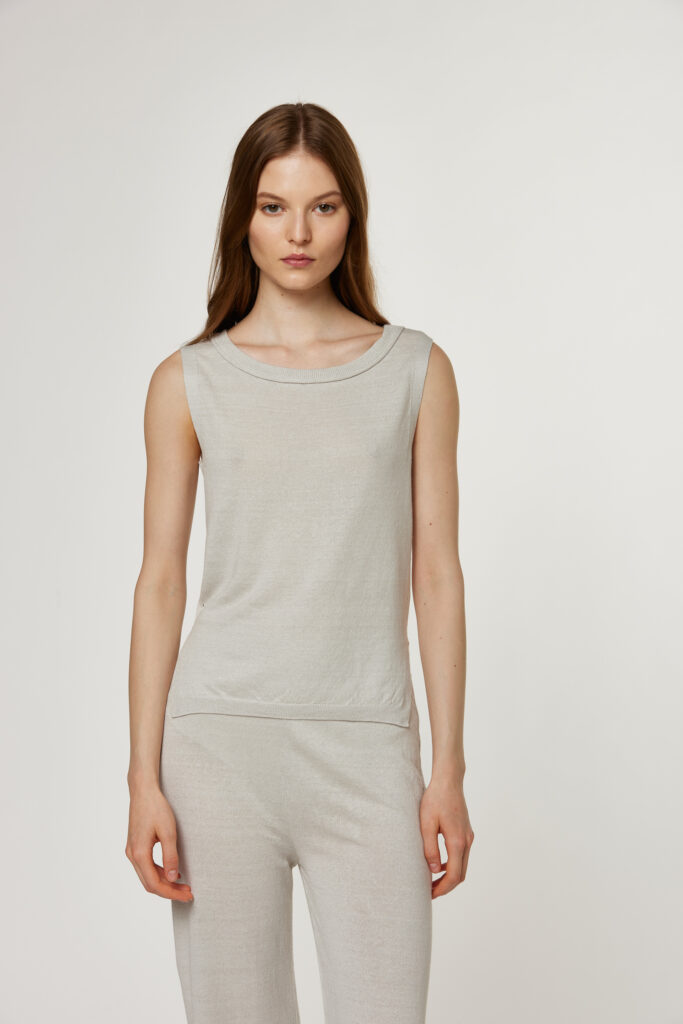 Canotta paricollo con dettagli sui fianchi e goccia sul dietro, capo in 64% linen, 36% organic cotton, rasato, tinto filo, regular fit, F14