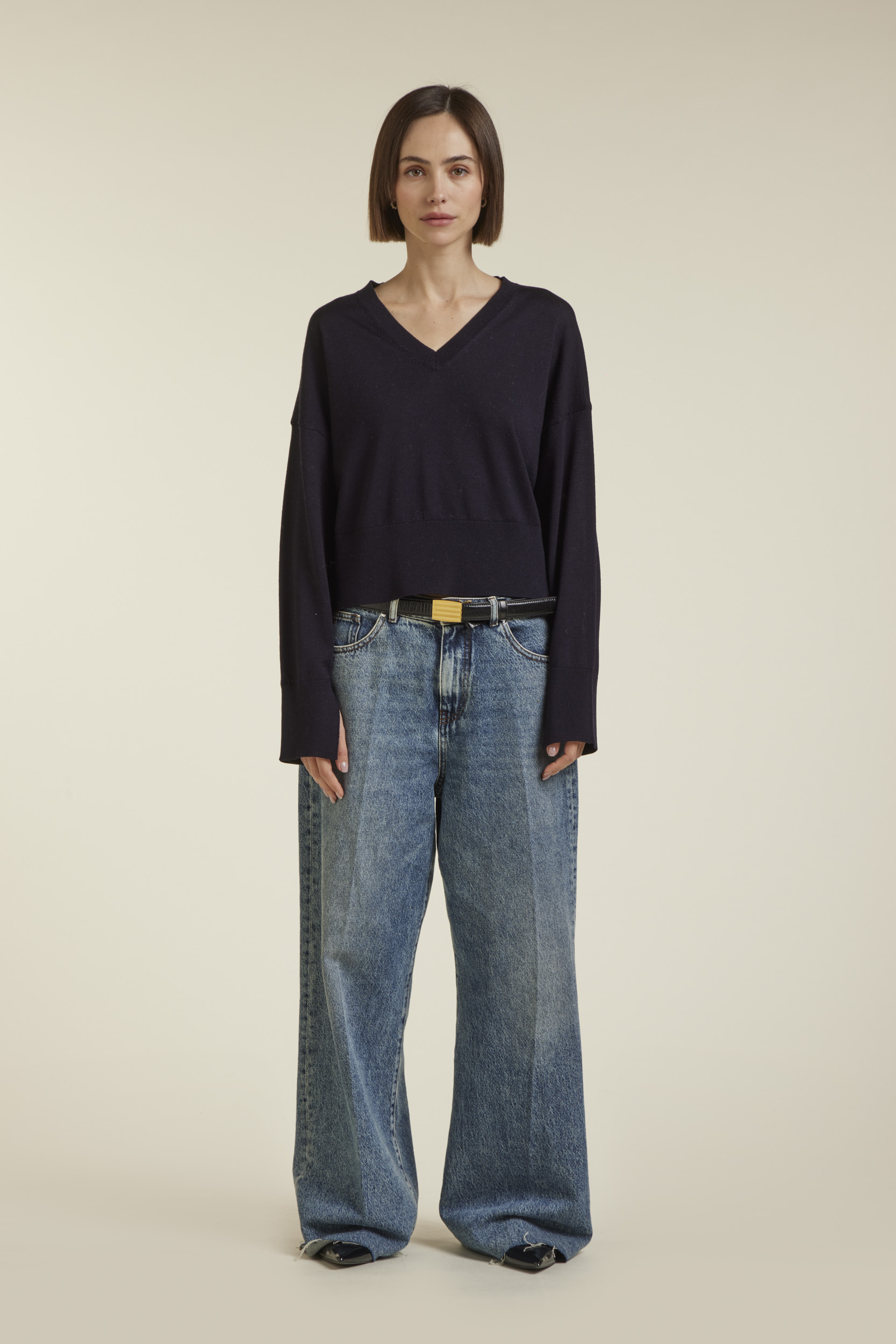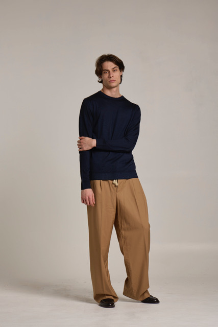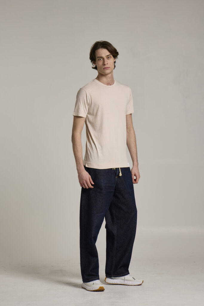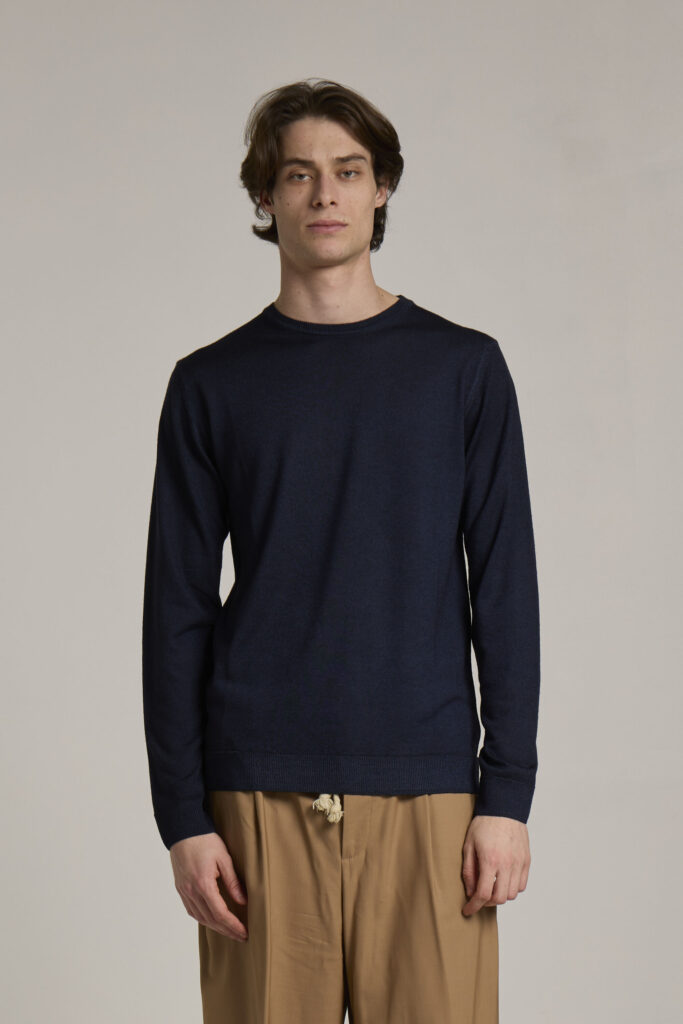 Crew neck, single jersey, 100% extrafine merino wool, garment dyed