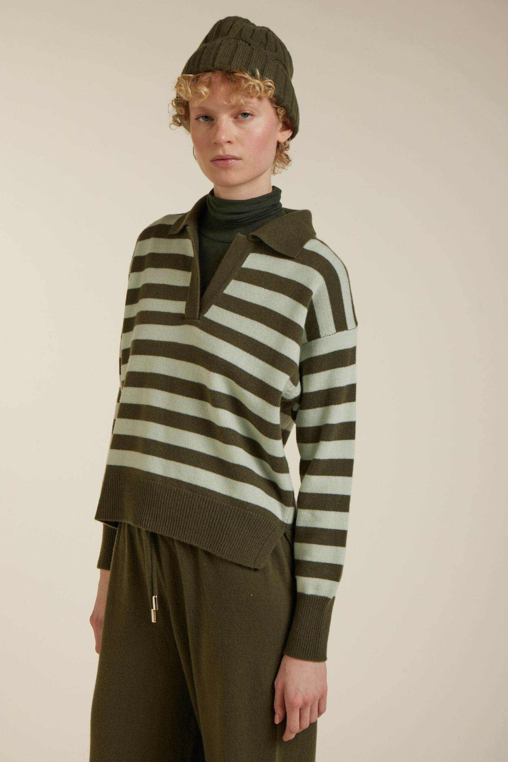 POLO A RIGHE MISTO CASHMERE