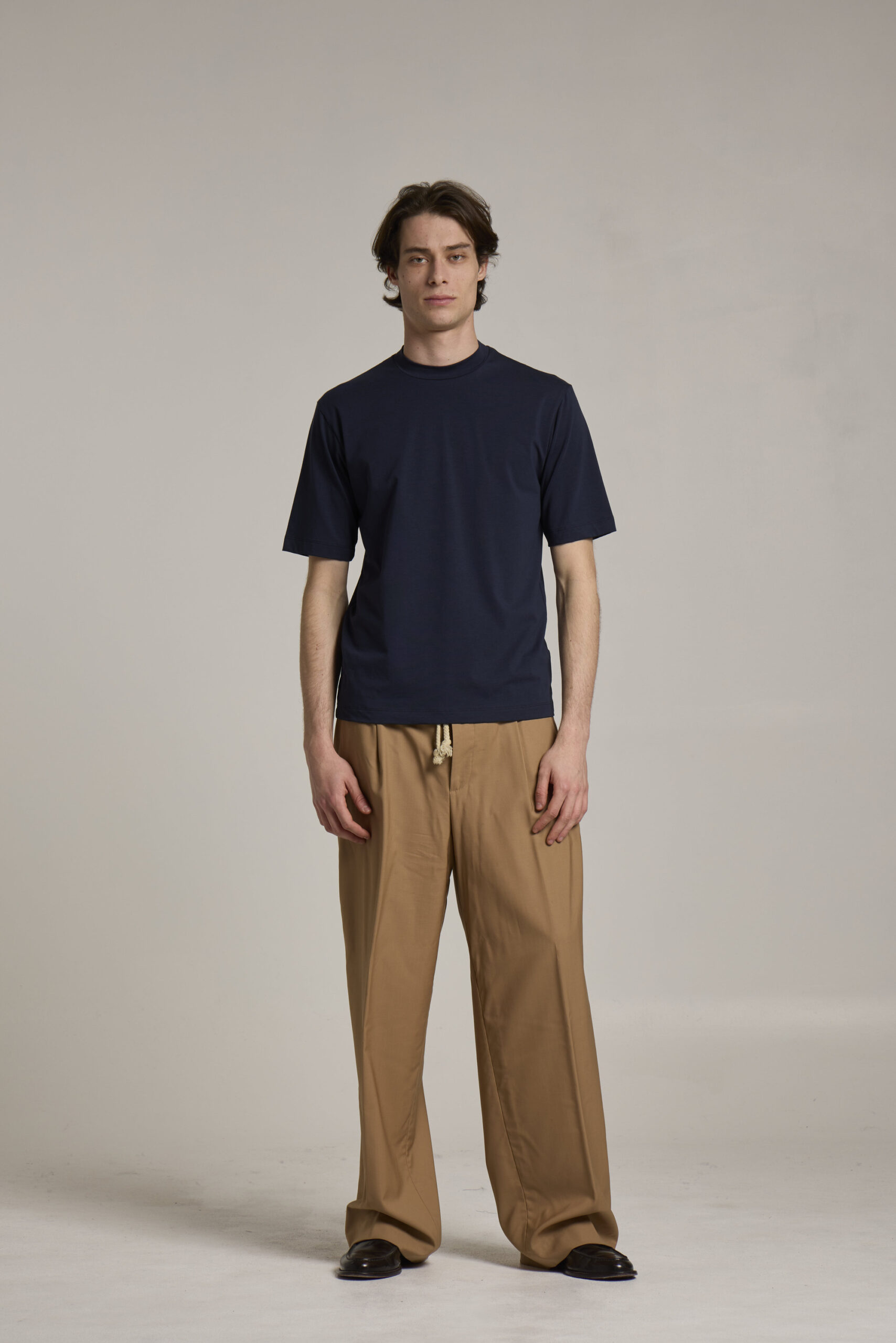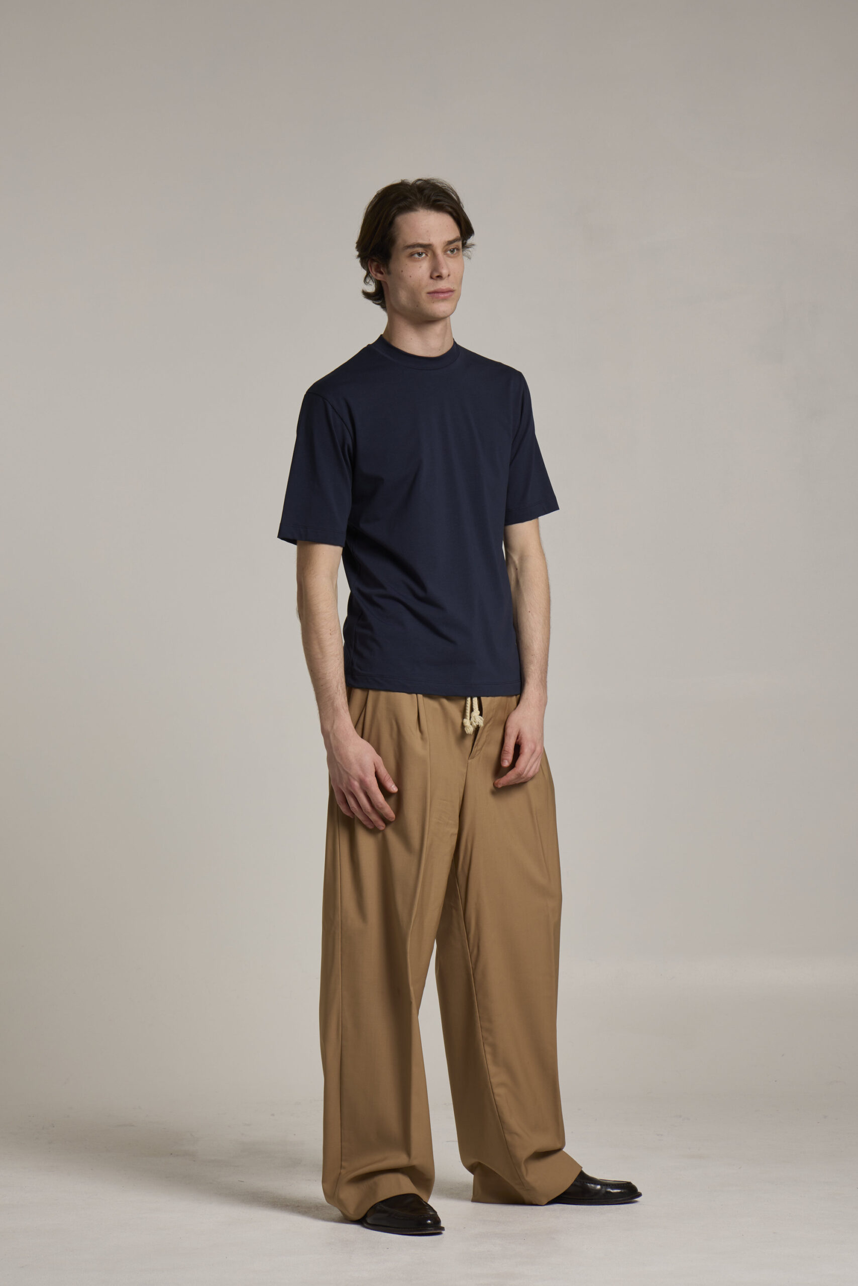 Crew neck, single jersey, merino cashmere, yarn dyed