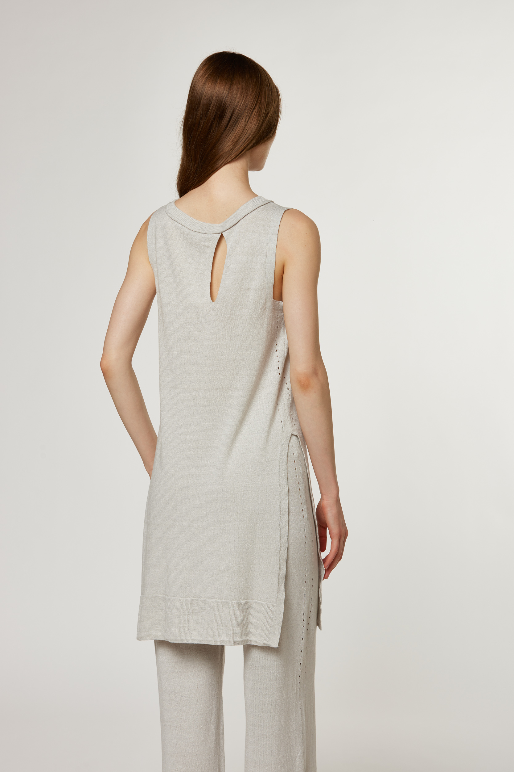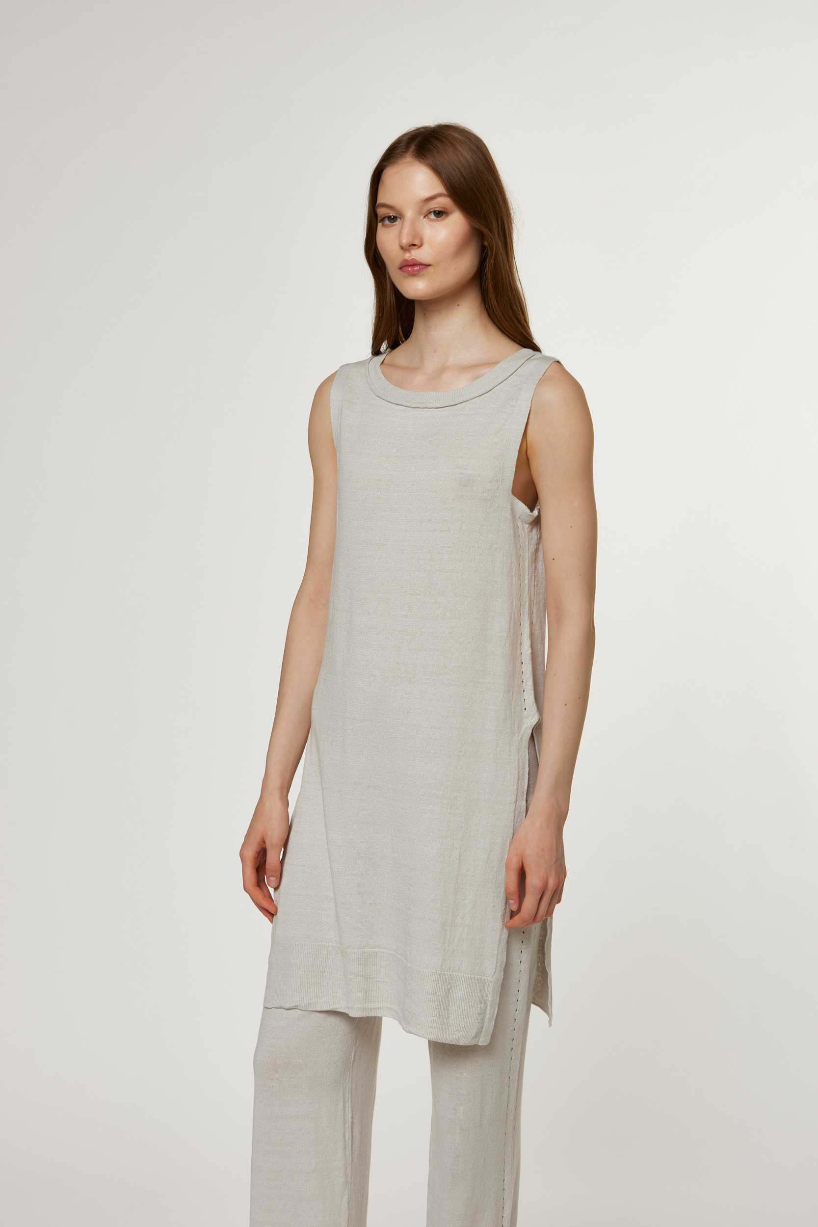Abito paricollo con spacchi sul fondo, capo in 64% linen, 36% organic cotton, rasato, tinto filo, regular fit, F14