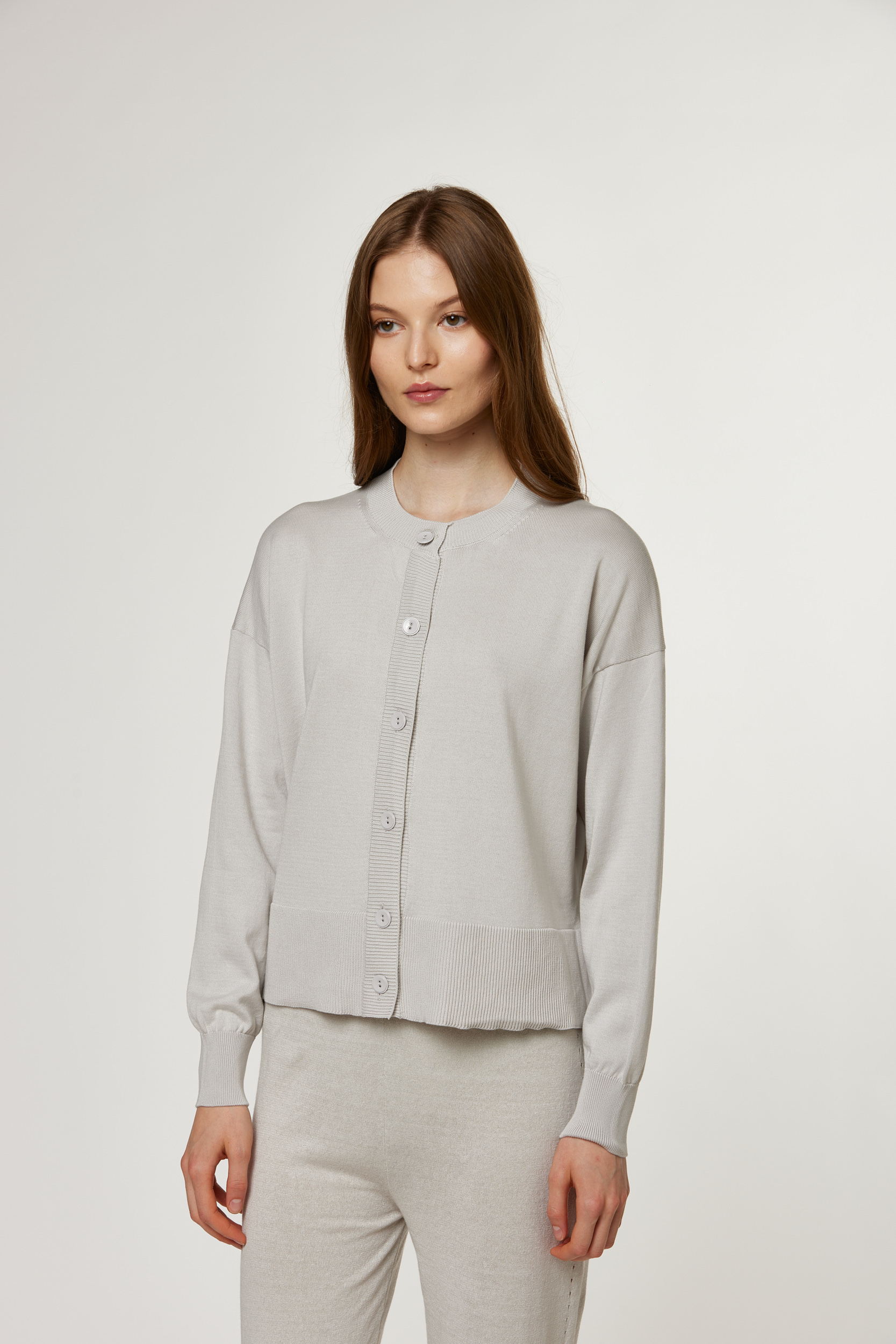 Gilet lungo, misto cotone, punto maglia, tinto filo