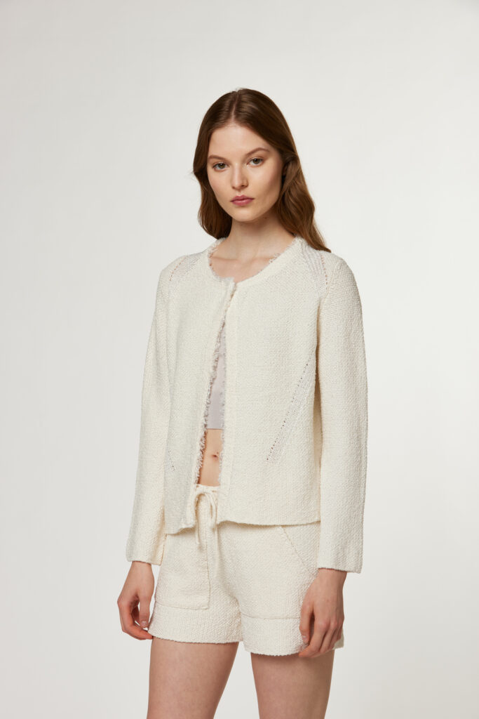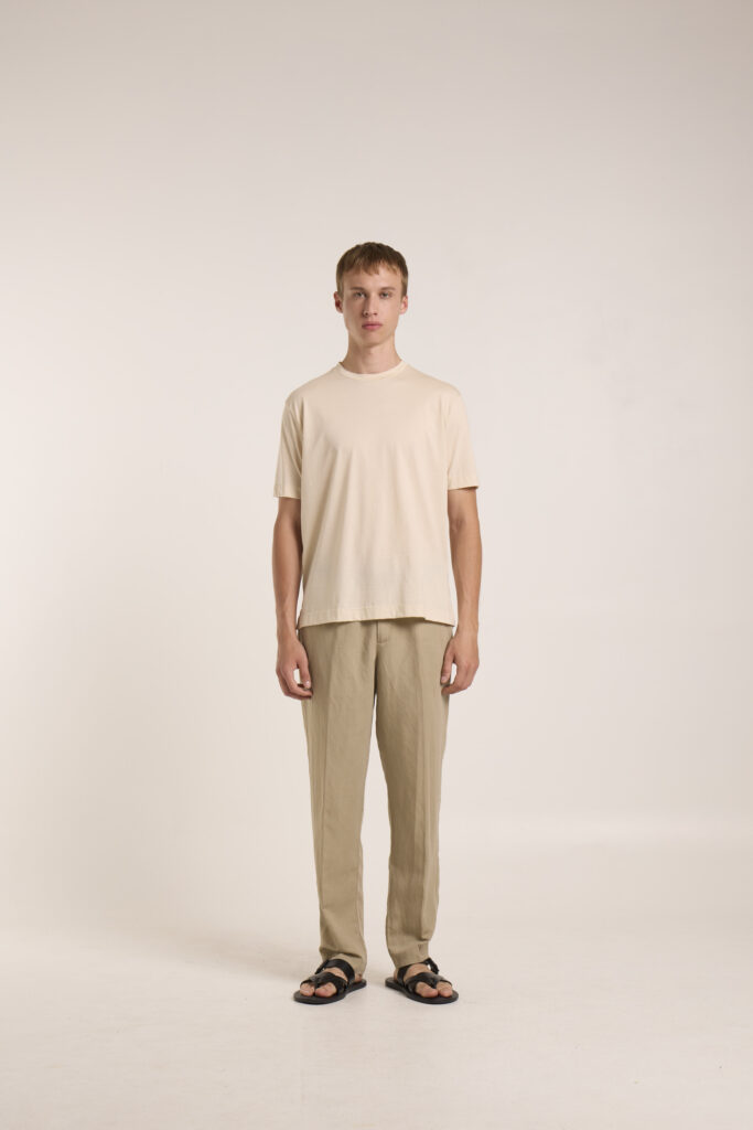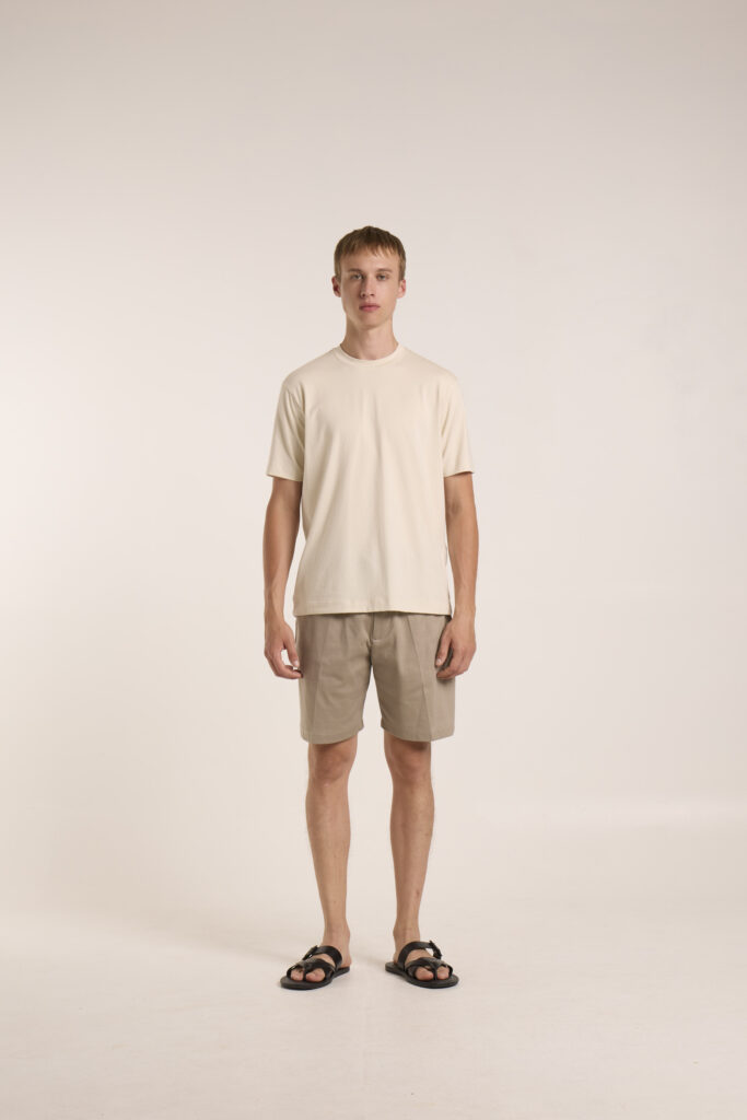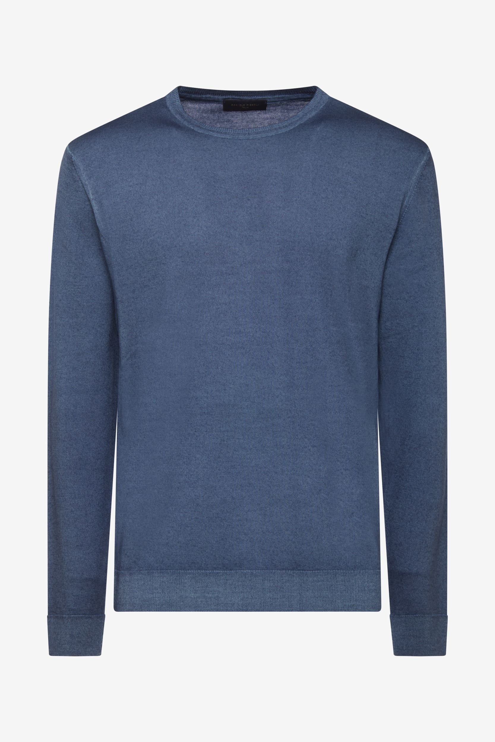 Paricollo, capo in 100% extrafine Merinos wool, con balza a coste 1×1 su fondo e polsini, tinto in capo con tecnica a freddo effetto vintage, fit regolare, rasato, F16