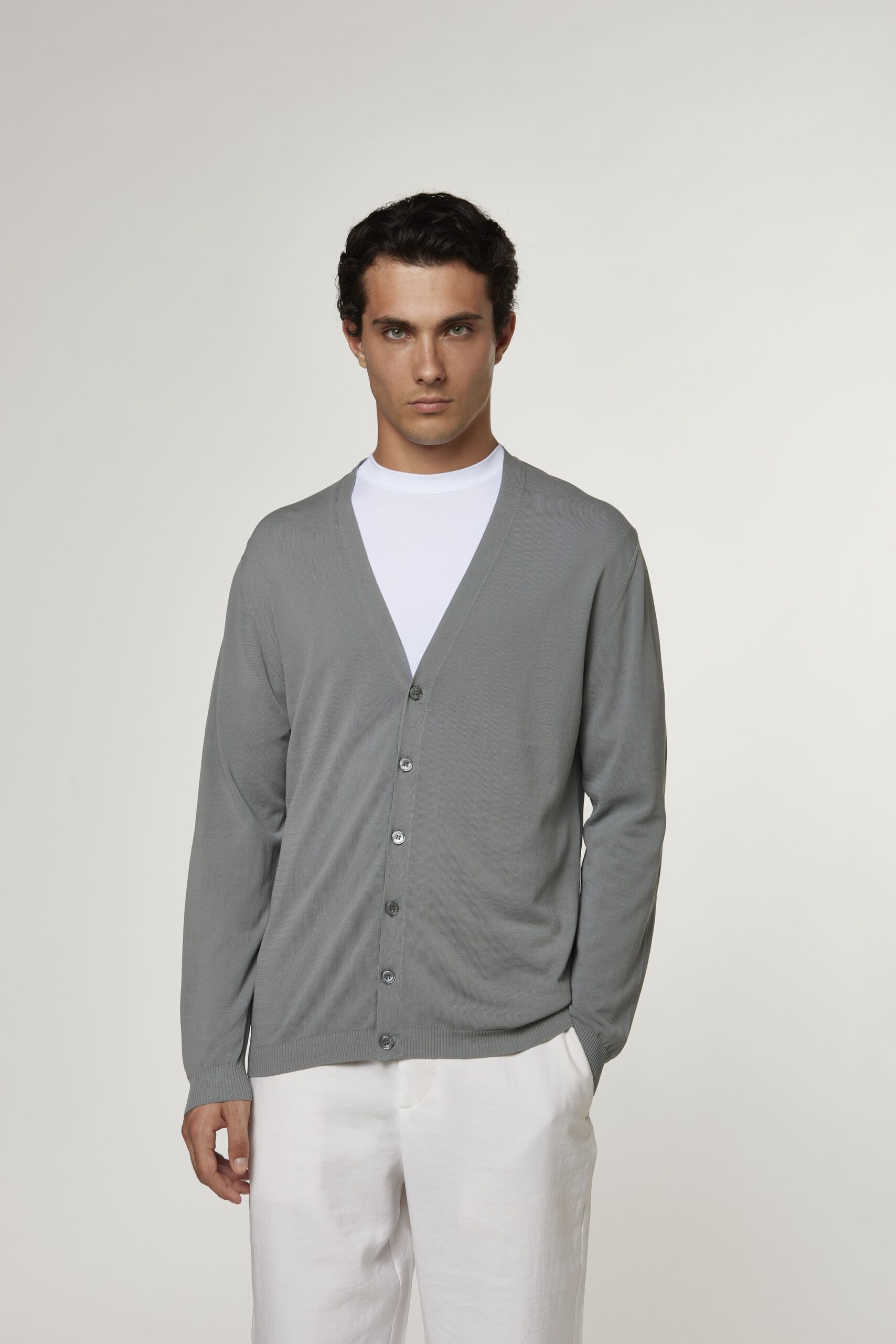 Cardigan con bottoni, capo in 100% cotone crepe, con balza a coste 1×1 su fondo e polsini, fit regolare, rasato, F16