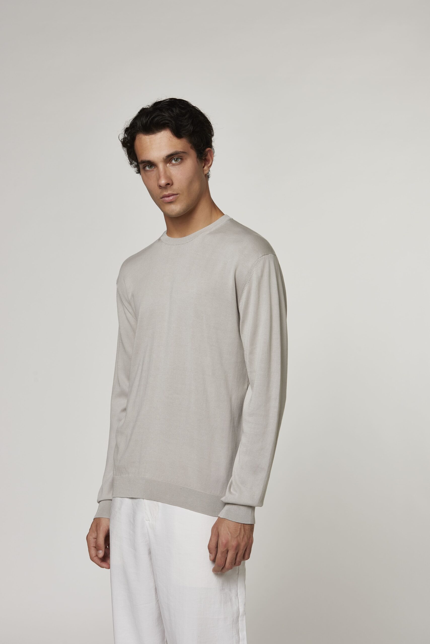Paricollo manica lunga, capo in 100% cotone, con balze a coste su fondo e polsi, tinto filo, regular fit, rasato F16