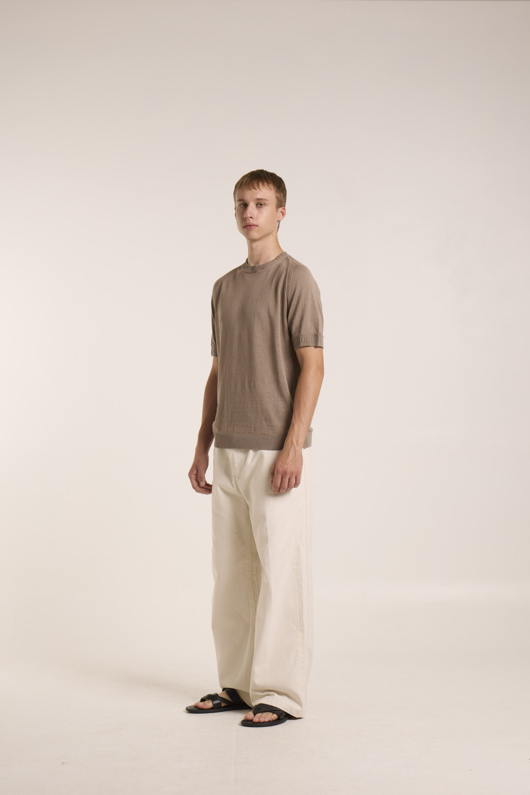 paricollo manica corta costa interrotta in lino cotone, fin 14