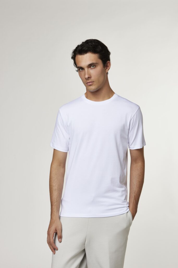 T-shirt paricollo con ricamo, capo in 100% cotone, tinto capo, fit regolare