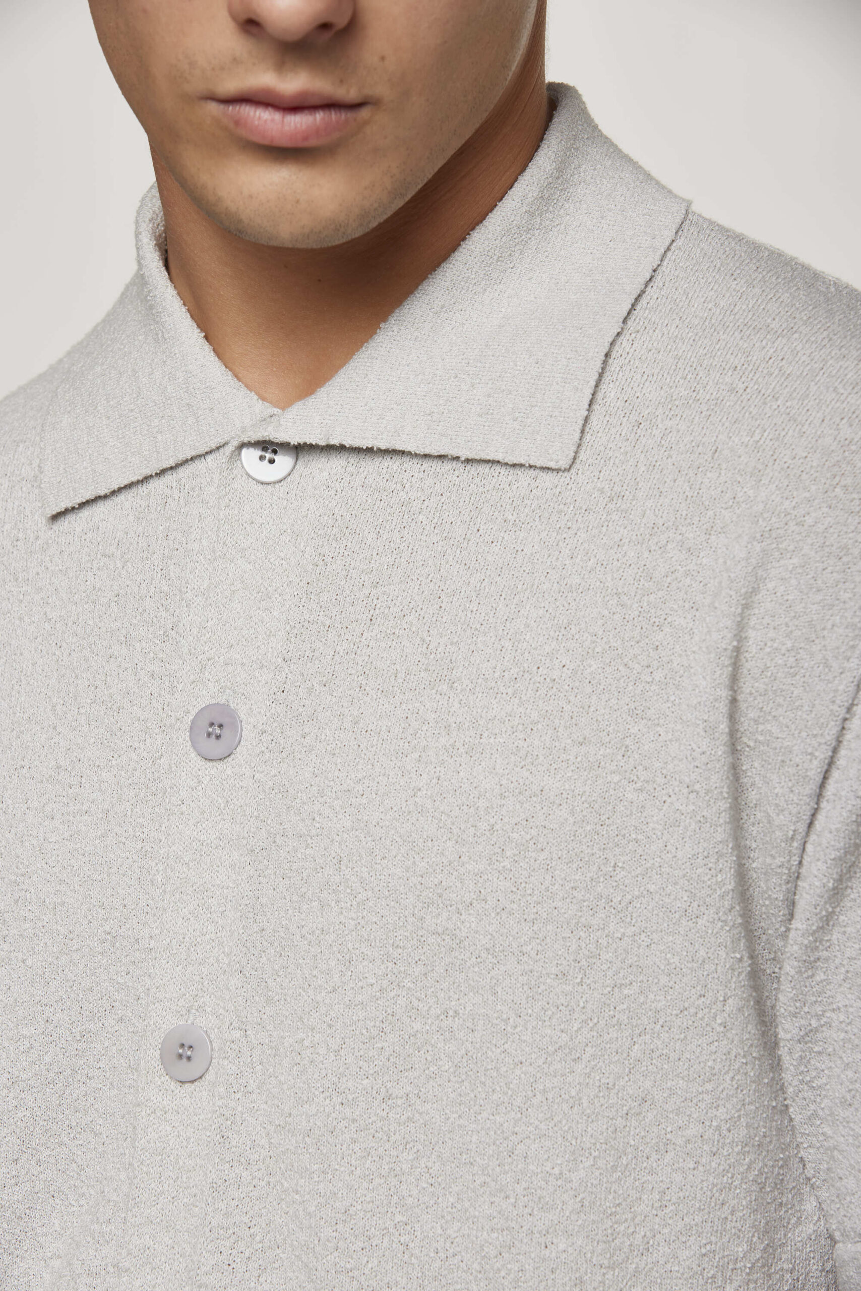 Overshirt manica corta, capo in 74% organic cotton, 26% recycled nylon, tinto filo, regular fit, rasato , F12