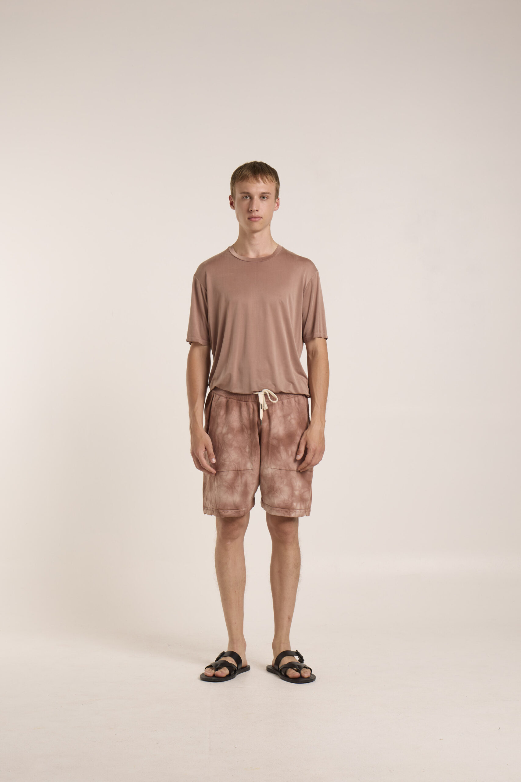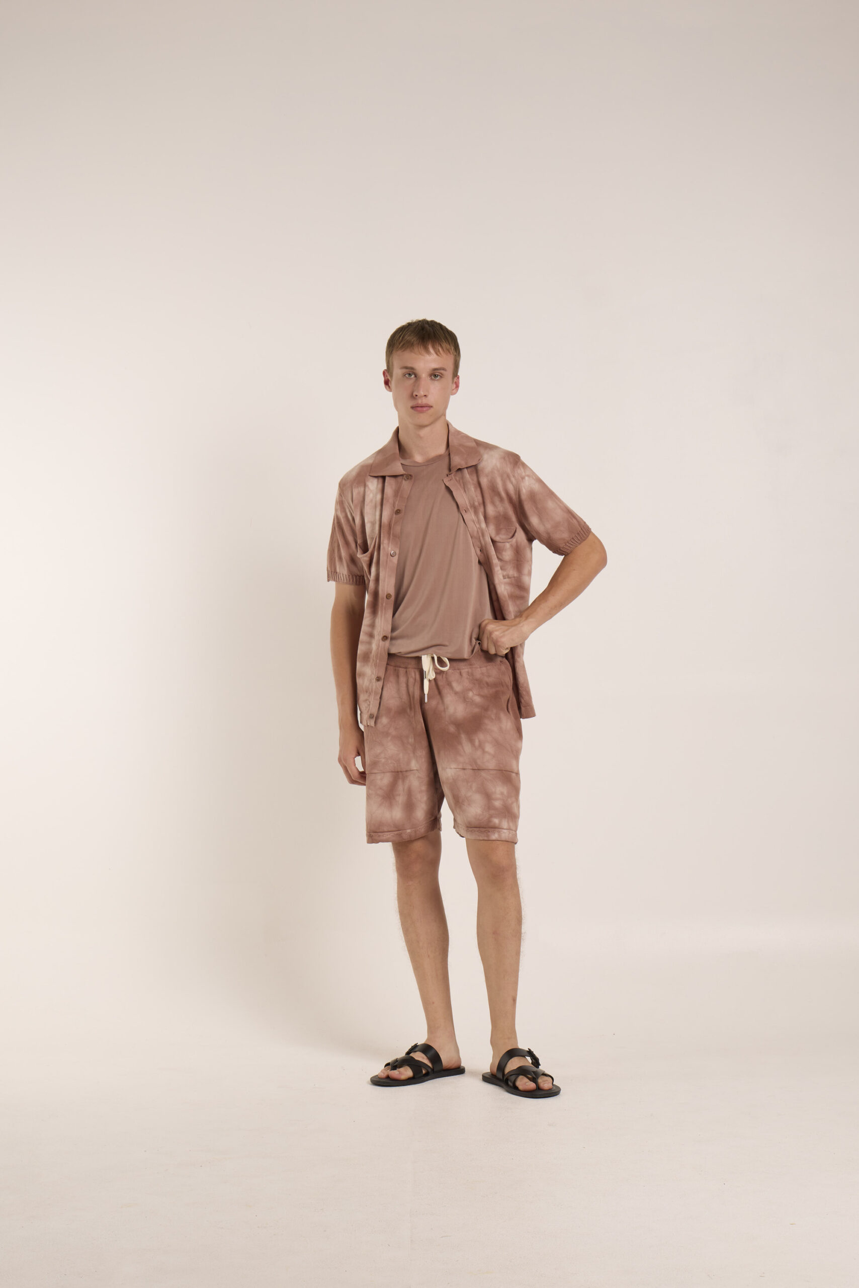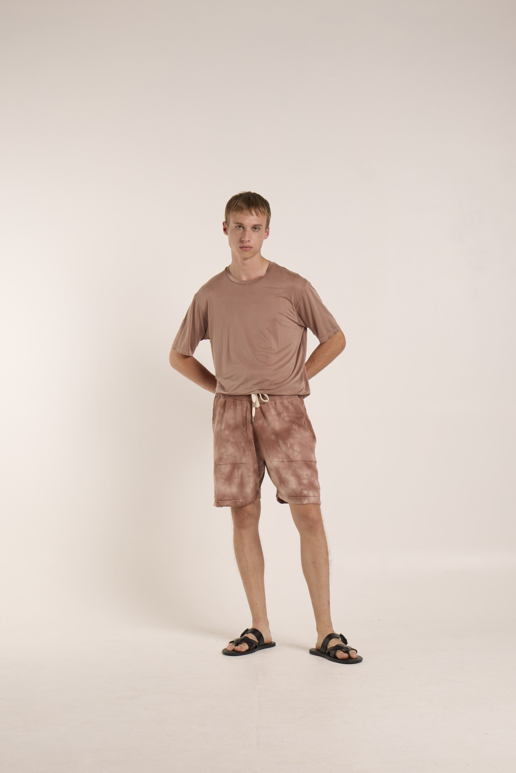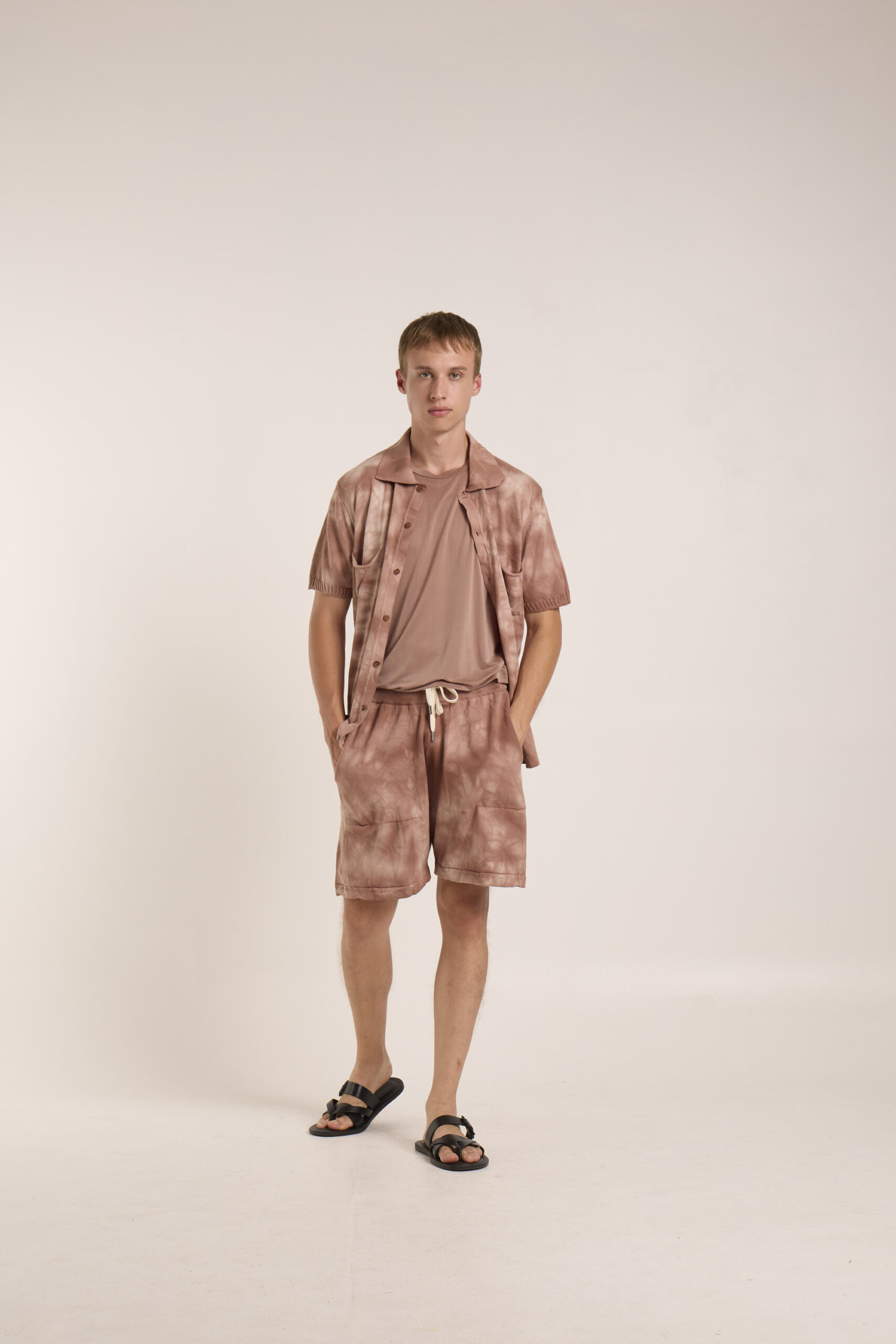 cotone pettinato tie&dye , shorts con tasche in macchina e coulisse con elastico, orlo con tubolare con dettaglio , fin 12