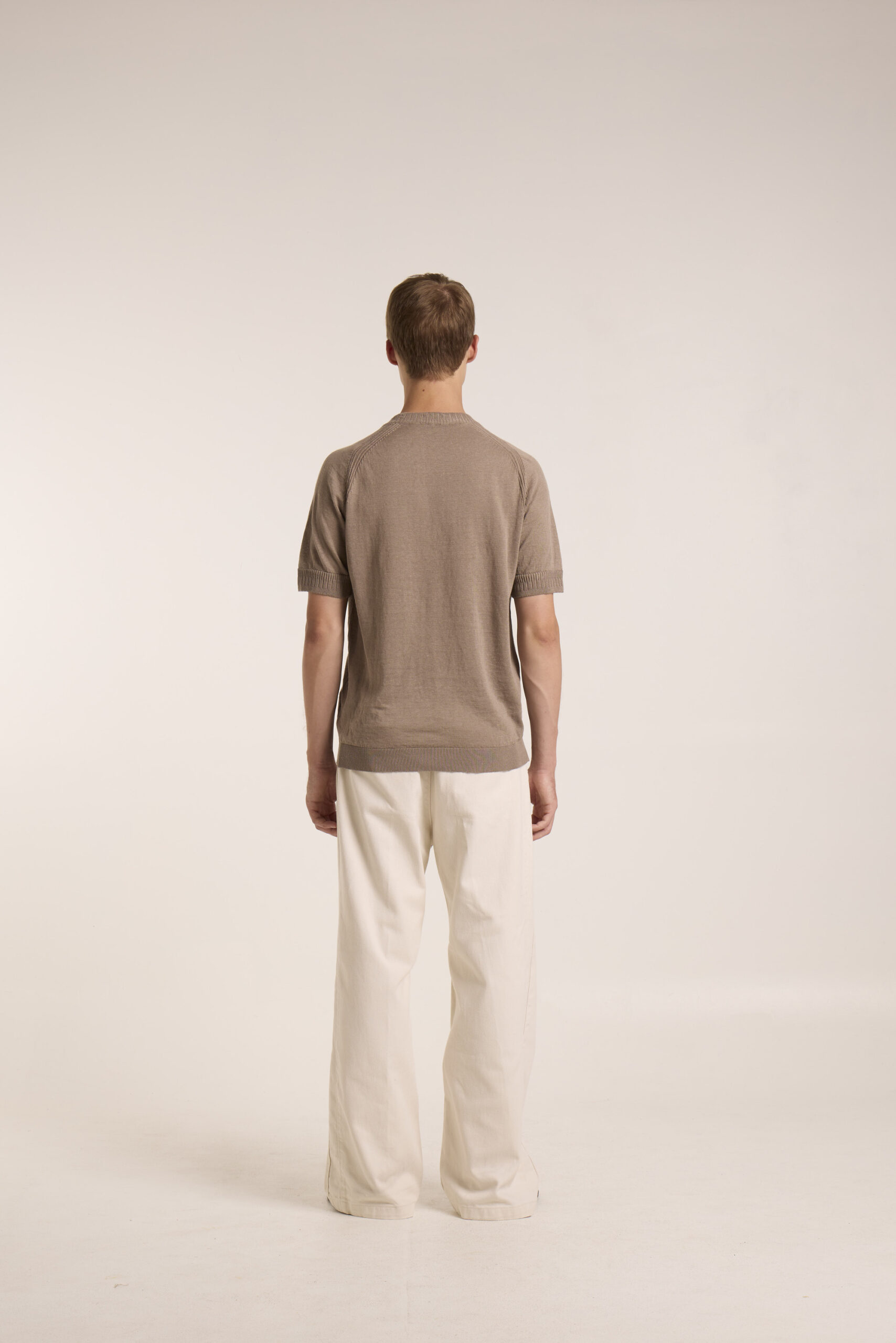 Tshirt paricollo in lino elastane, tintura freddo