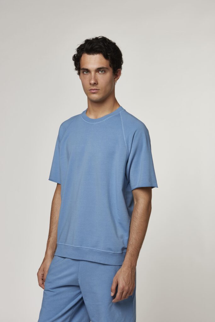 Felpa manica corta taglio raglan, capo in felpa di 95% cotone e 5% elastane, tinto capo, regular fit