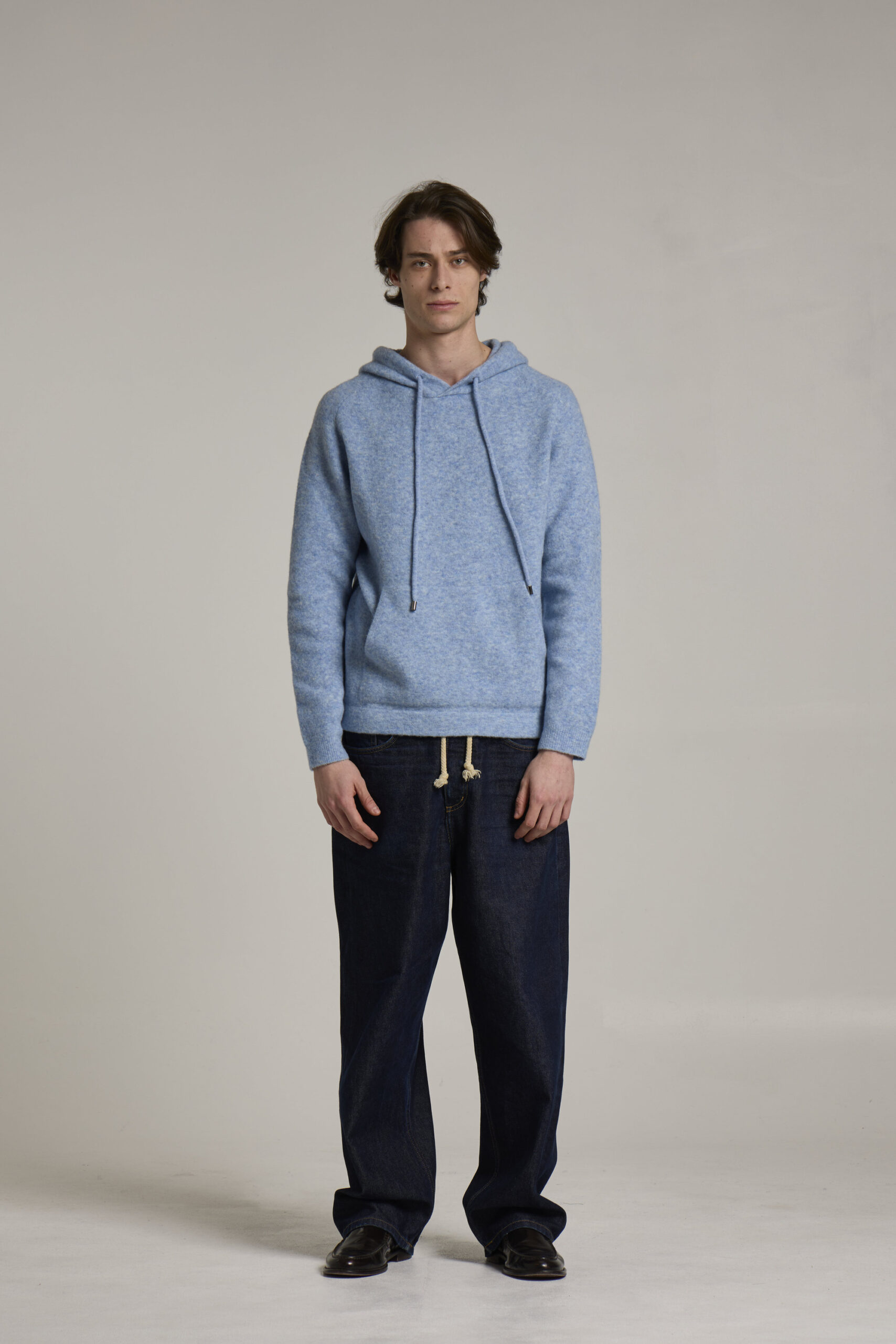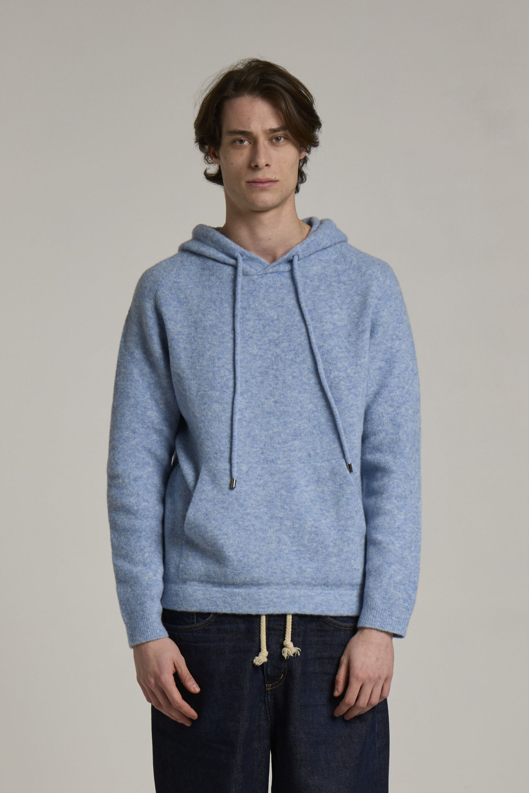 felpa con cappuccio, misto merino, tinto filo