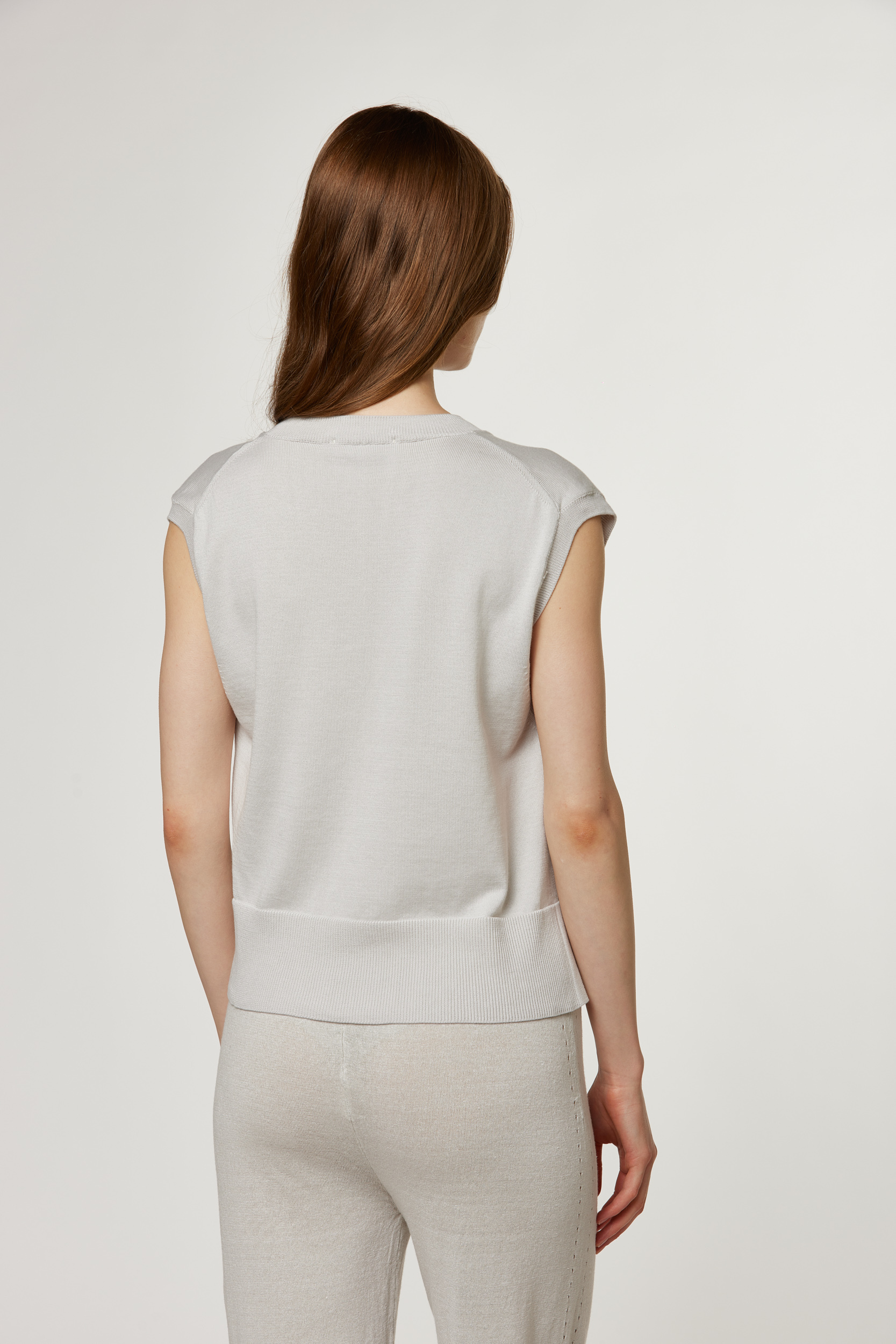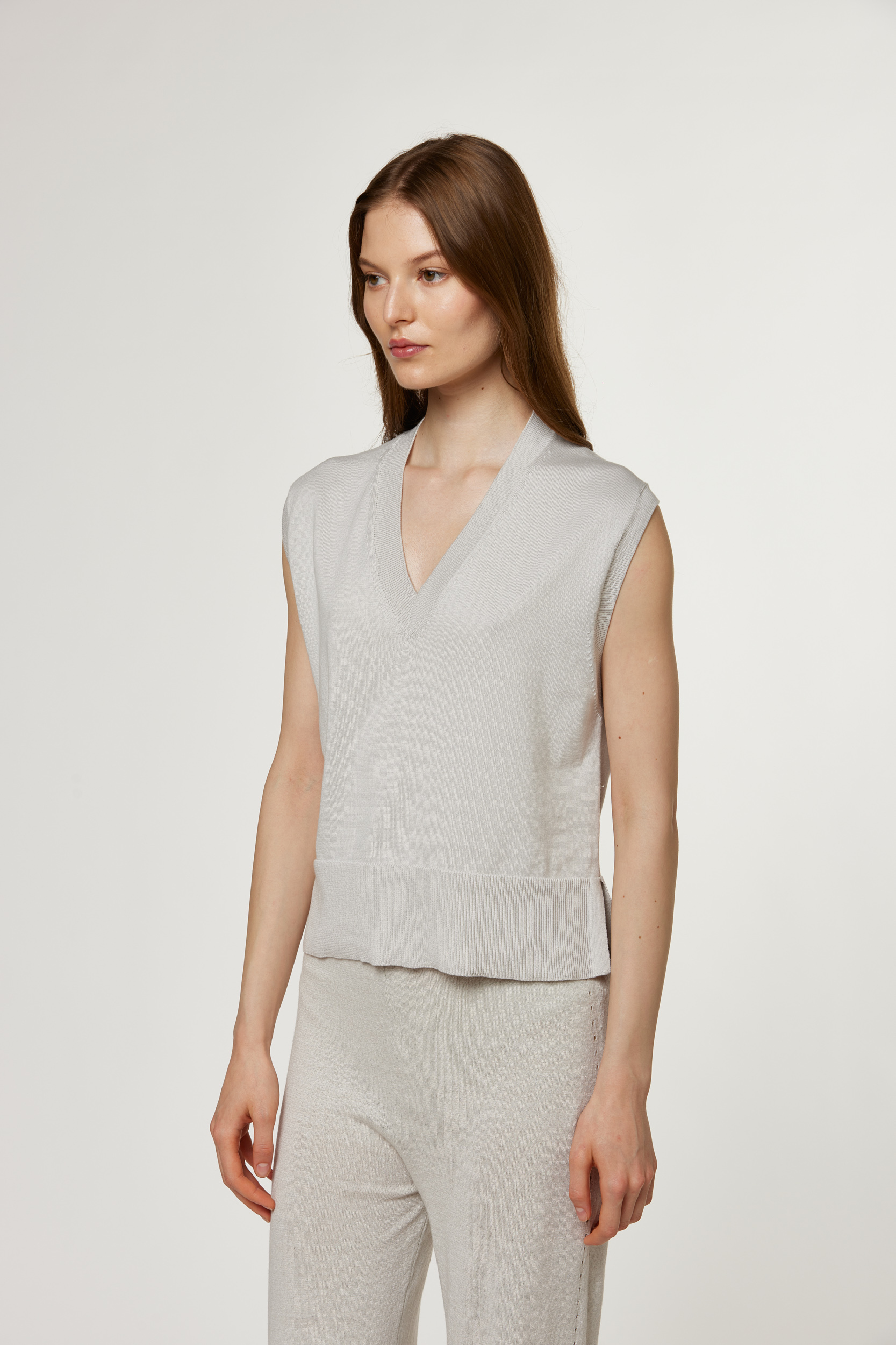 Gilet scollo V, spacchetti sui fianchi, capo in 100% cotone, con balze a coste su fondo e polsi, rasato, tinto filo, regular fit, F12