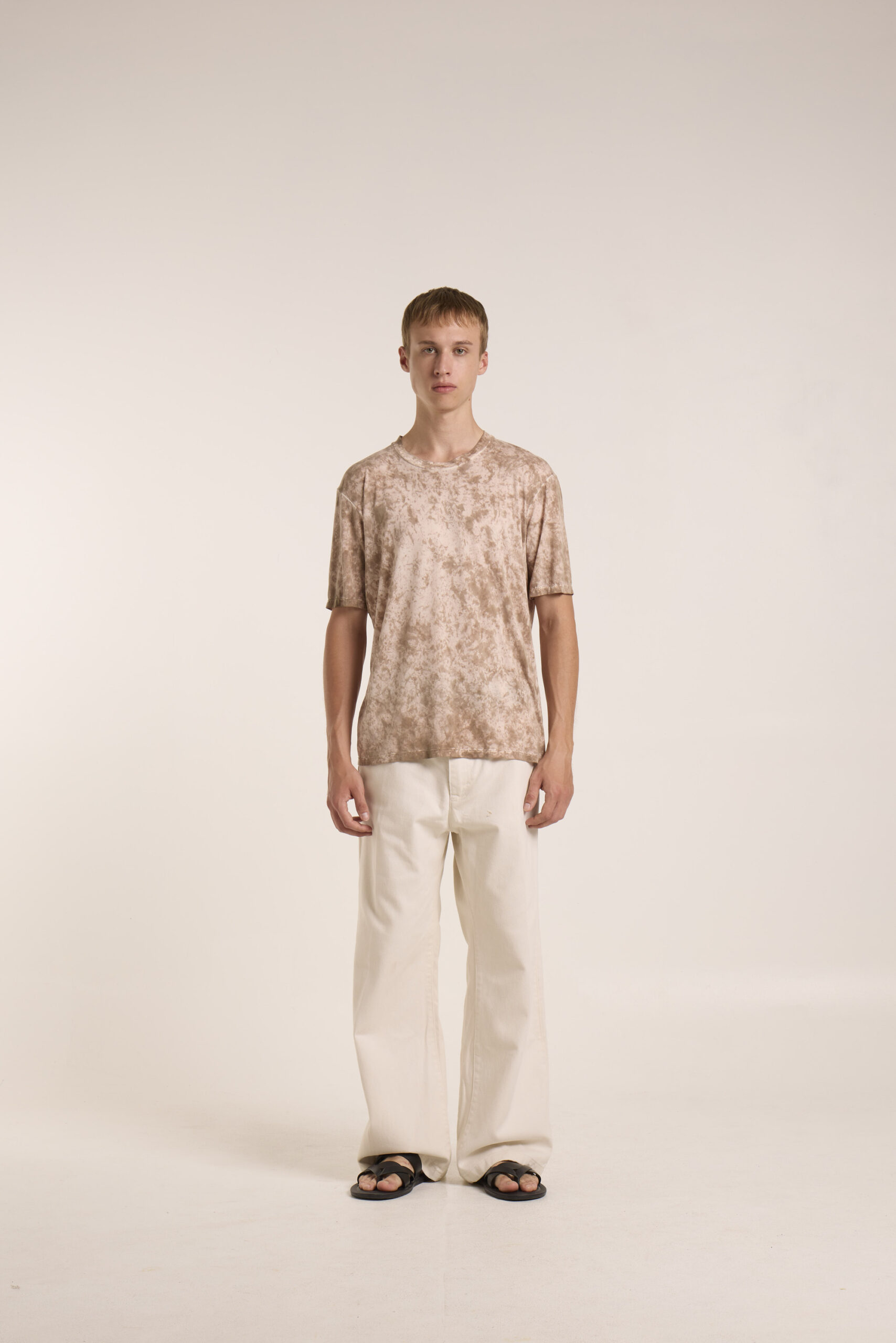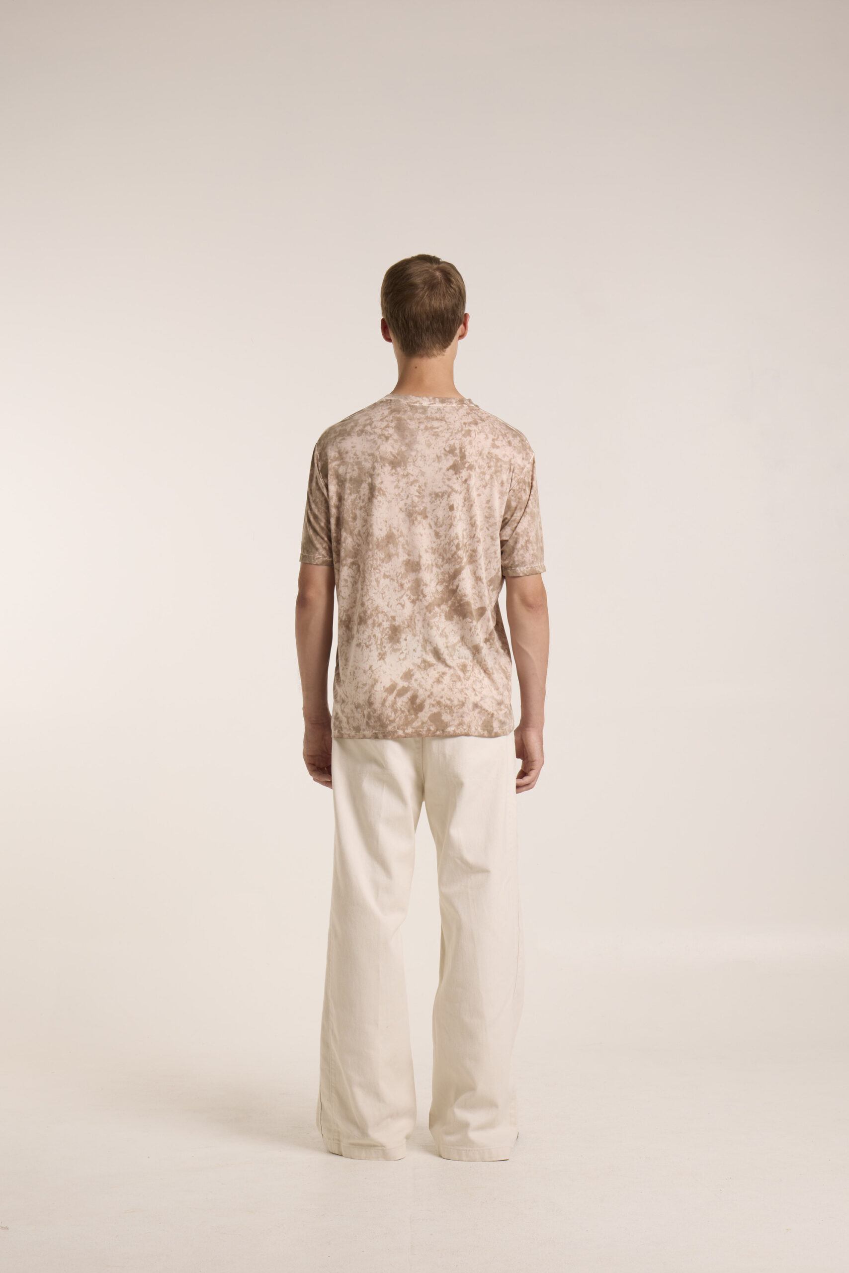 Tshirt paricollo mezza manica in cupro elastane tinta spot dye